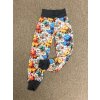 Jedná se o kalhotový střih - užší. Ušité jsou z teplákoviny, velice příjemný materiál s certifikátem pro děti do 3 let - eko standart 100. V pase je dírka na gumu v případě potřeby, guma není součástí výrobku.
